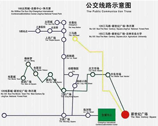 ※ 高速公路: 從凈月口出,走凈月大街,到世界廣場西側,便是會展中心從撫長高速公路到人民大街出口,沿人民大街北行,至衛星廣場右轉,走衛星路向東直行,衛星路和會展大街交匯處。下車。